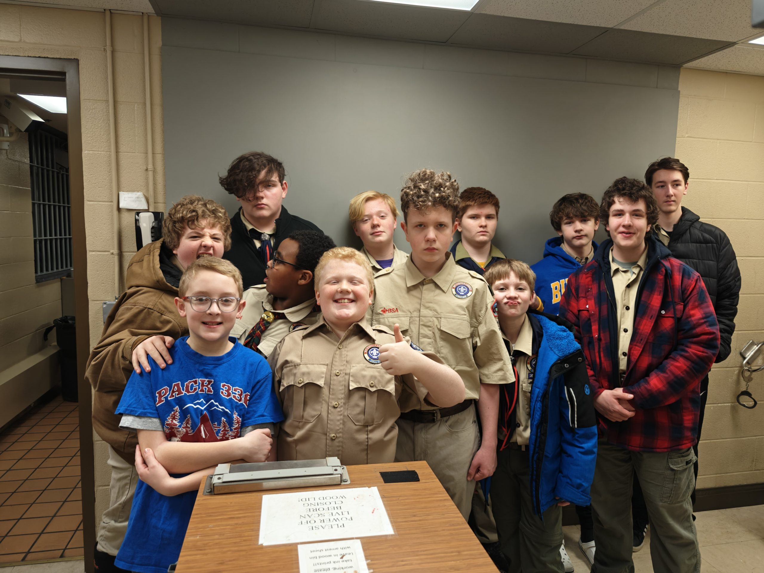 We went on a tour of our local Town Police, Town Court and Community Building. We even got to pre-fingerprint and introduce the Scouts to the police holding cells with the hope that they NEVER AGAIN see these spaces from anywhere except a tour!...