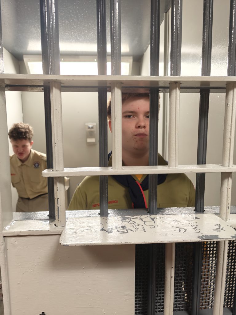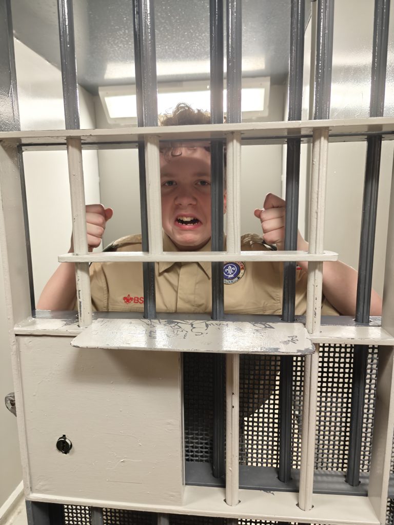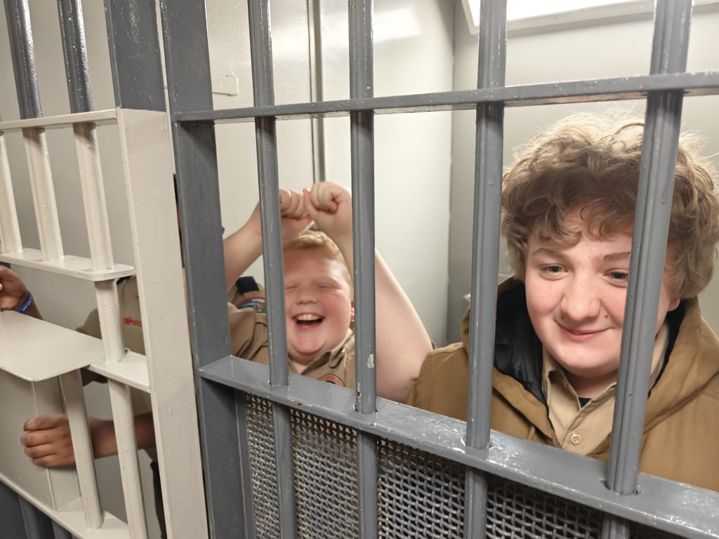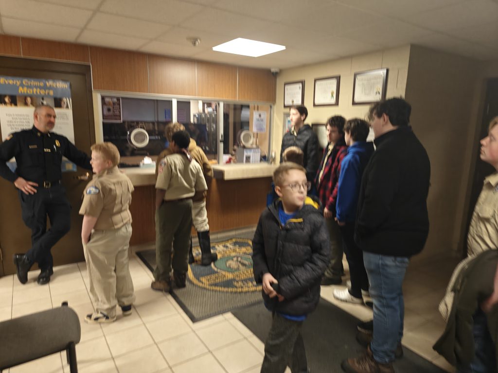 We went on a tour of our local Town Police, Town Court and Community Building. We even got to pre-fingerprint and introduce the Scouts to the police holding cells with the hope that they NEVER AGAIN see these spaces from anywhere except a tour!