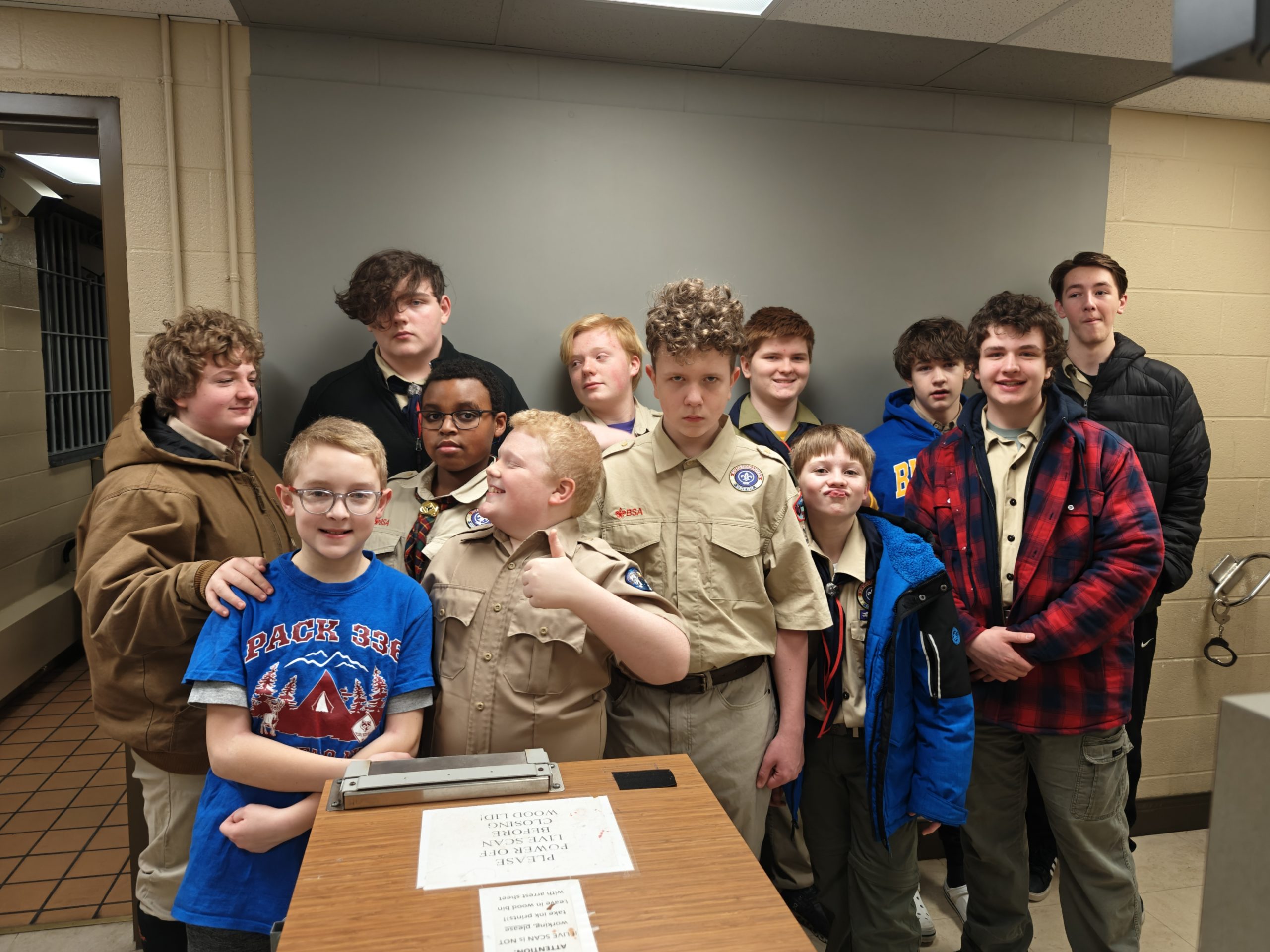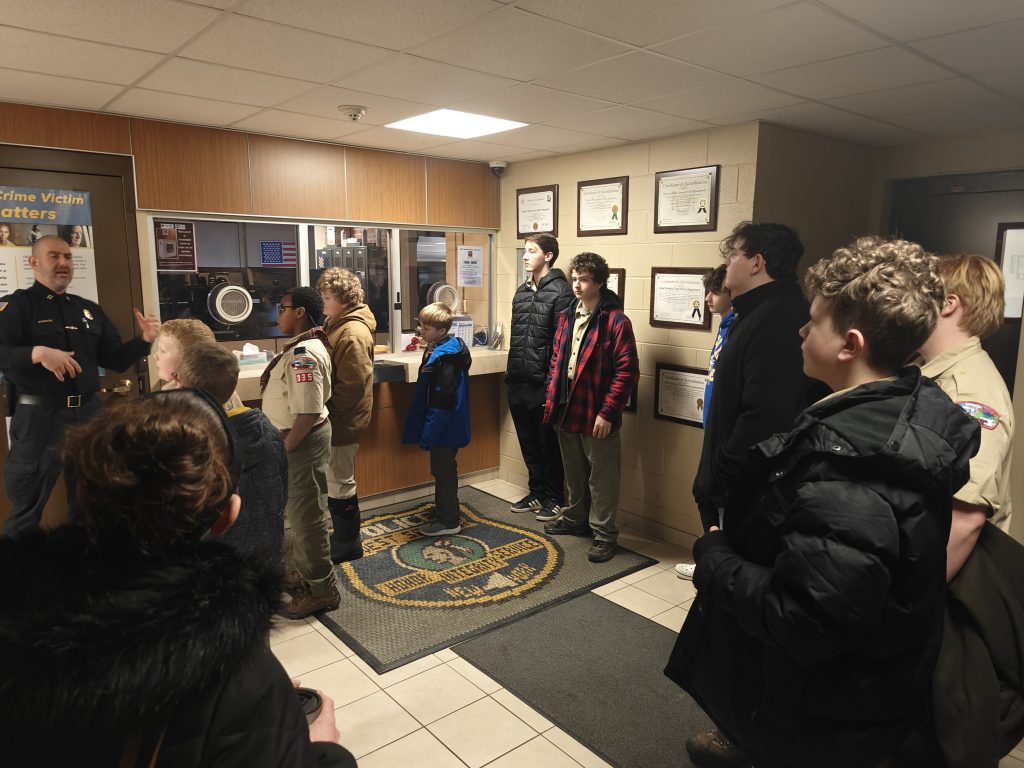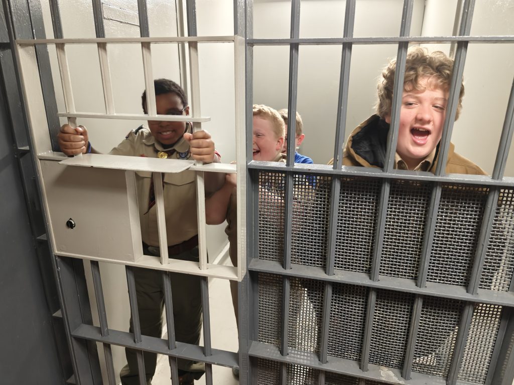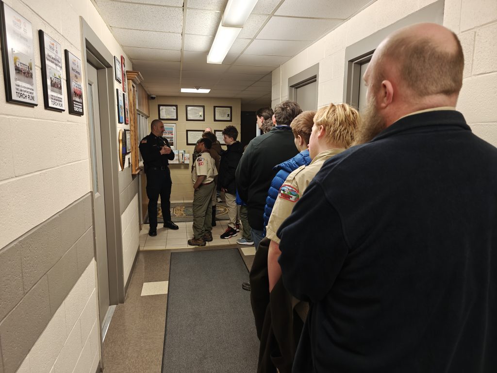 We went on a tour of our local Town Police, Town Court and Community Building. We even got to pre-fingerprint and introduce the Scouts to the police holding cells with the hope that they NEVER AGAIN see these spaces from anywhere except a tour!