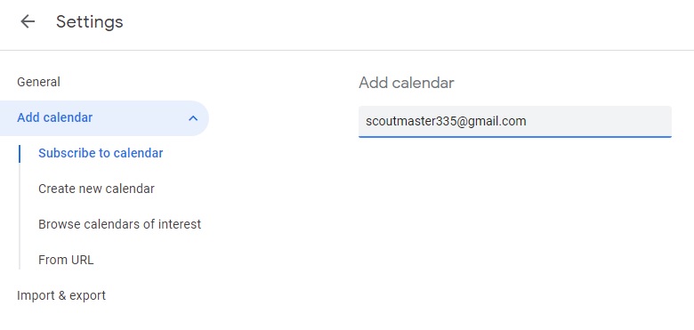 To add the Troop-335 calendar to your Google Calendar go to a desktop and login to calendar.google.com and look for the + button to ADD as described in the image below.